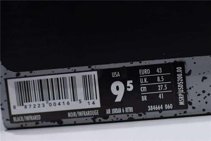 Air Jordan 6 Retro Black Infrared 384664-060